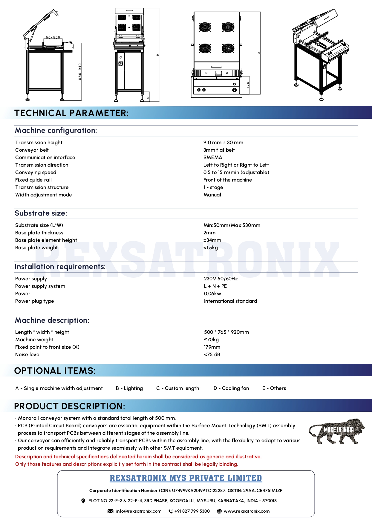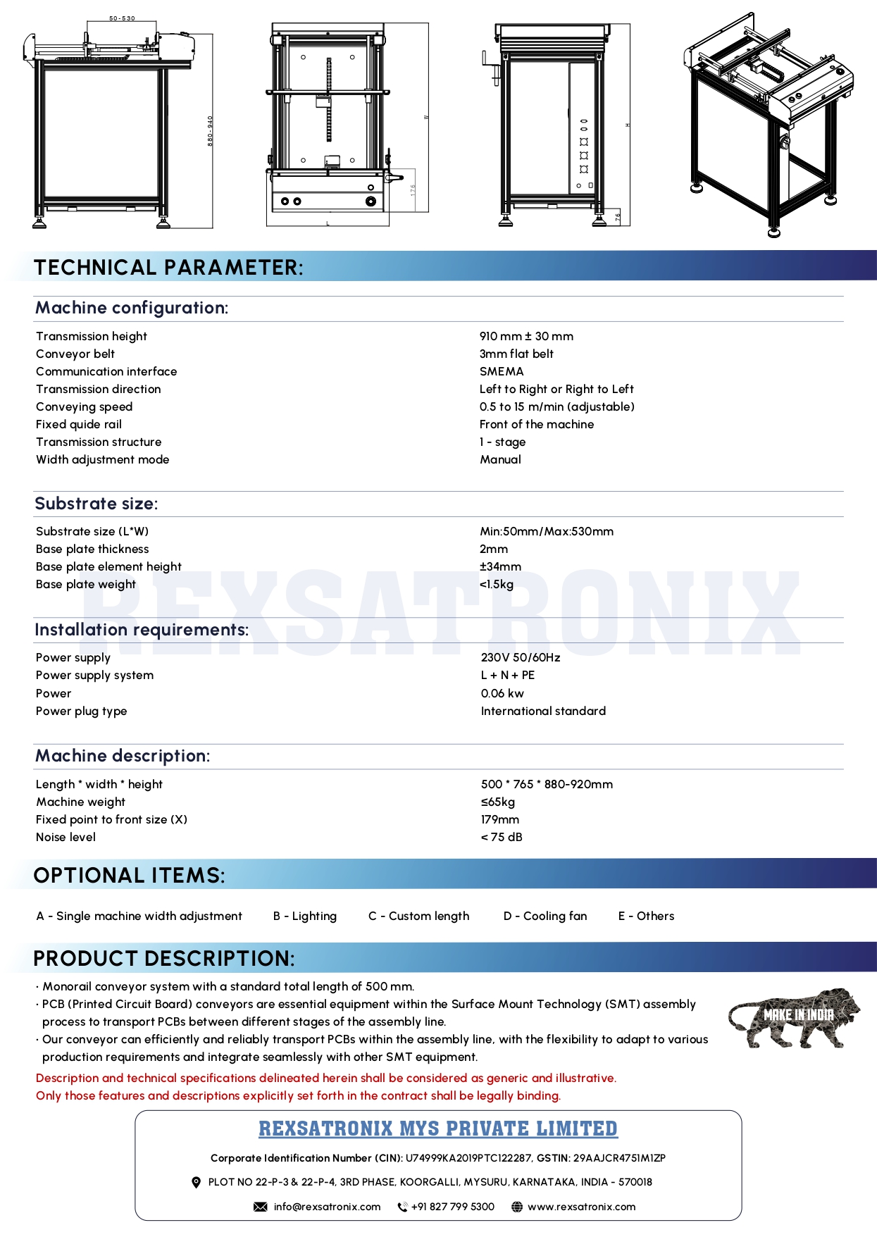 REXSATRONIX is a cutting-edge startup based in Mysuru, India. We specialize in the design, development, and manufacturing of advanced equipment and software solutions for Electronic Manufacturing Industries. We offer end-to-end solutions that enable electronic manufacturers to significantly improve their overall productivity and elevate their journey of automation.